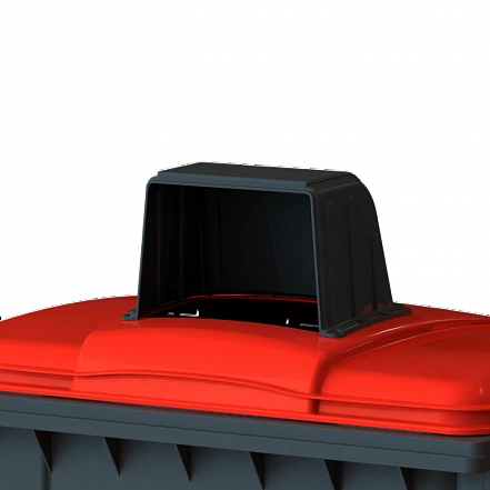 Капюшоны на крышках мусорных баков уменьшают попадание внутрь дождя или снега.