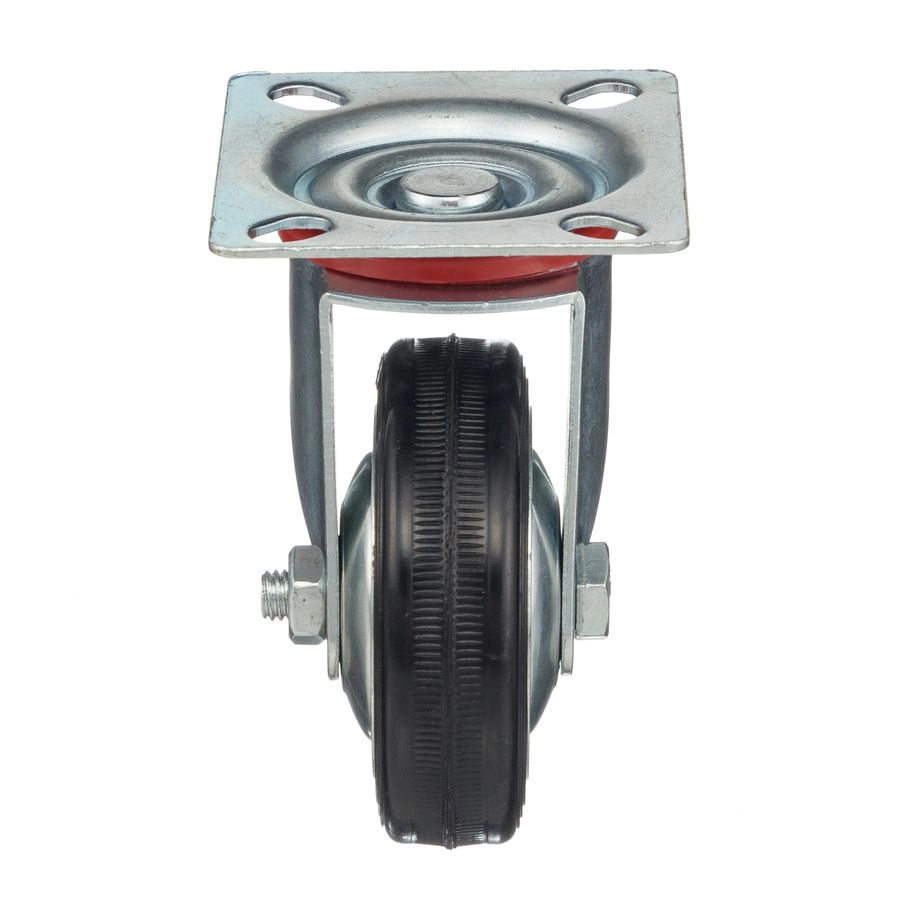 Колесо поворотное 4001-75, диаметр 75мм., грузоподъемность 50кг. Колеса из черной литой резины, центр из двух гальванизированных дисков из штампованной стали. Роликовый (игольчатый) подшипник расположен в углублении, выдавленном под прессом, и содержит цилиндрические ролики подшипника. Кронштейн изготовлен прессованием из листовой стали. В поворотном узле двухрядный шарикоподшипник. Возможно применение на относительно грубых полах складов, заводов, производственных и строительных площадках. Данные колеса можно использовать на неровных поверхностях, во влажной окружающей среде и использовании вне помещения, не рекомендуется применять в среде с органическими растворителями, хлорированными веществами, гидрокарбонатами и минеральными маслами. Температура эксплуатации от -20 до +70С.