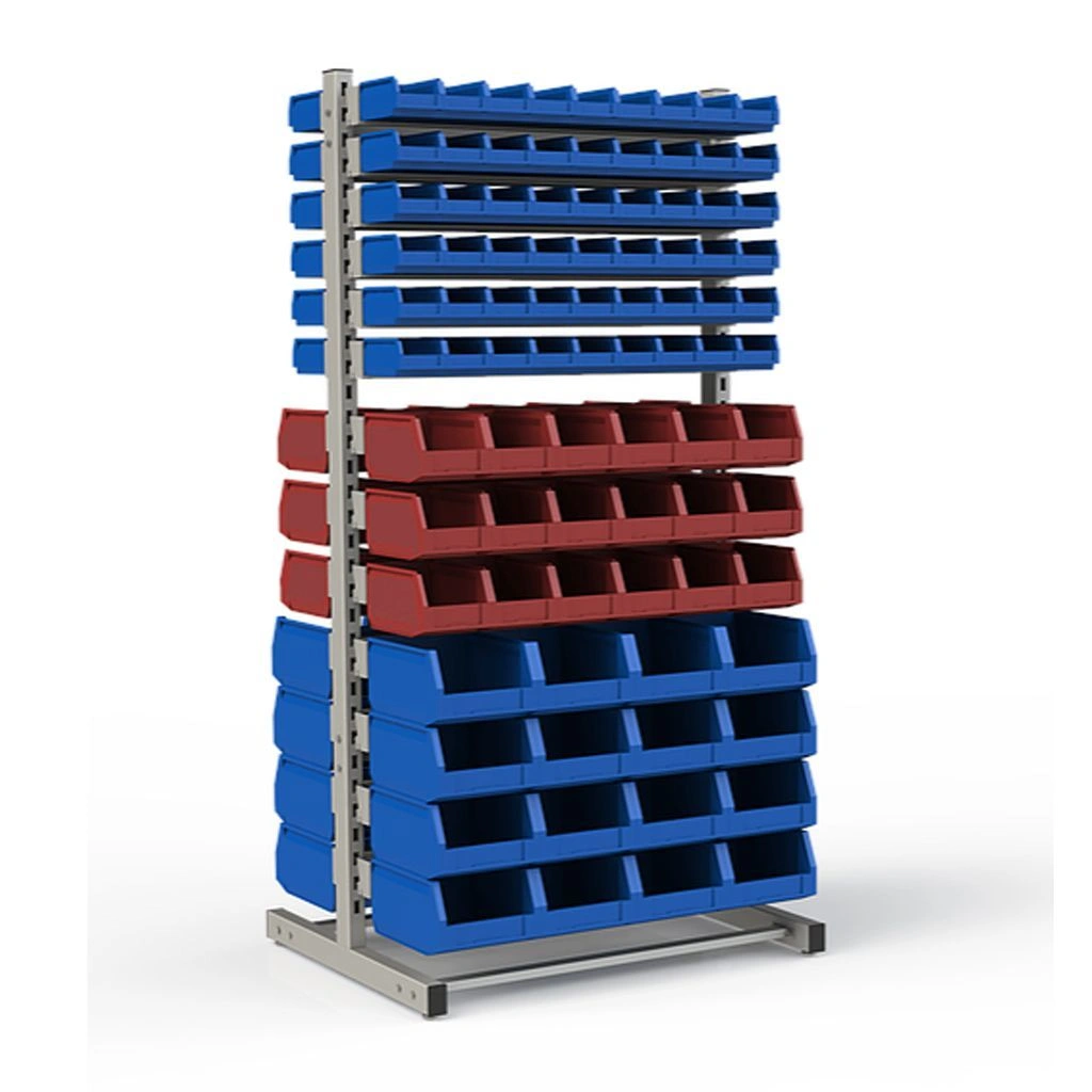 Стеллаж разработан специально для систематизации, хранения различных комплектующих, деталей, запчастей, крепежных и строительных материалов: болты, гайки, сверла, подшипники, метизы, фитинги, сантехника, зажимы, заклепки и т.д.